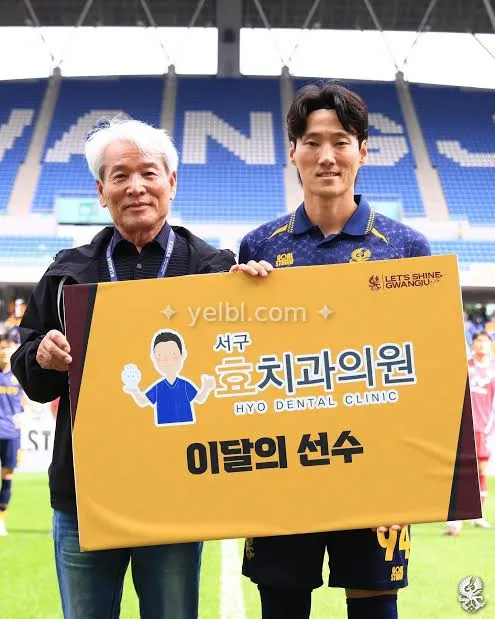 아랫사진은 2025년 10월 4일 대구FC와의 경기를 앞두고 서구효치과의원과 함께하는 8월 이달의 선수상을 수상한 사진이네요. 광주FC가 역사상 처음으로 만든 써드 유니폼을 입고 뛴 2번째 경기이지만, 2경기 모두 져서 패귀 유니폼이 되버렸습니다. 옐블 “심상민”은 실제 심상민의 매치원 써드 유니폼을 보유하고 있습니다. ㅅㅅㅁ!! ㅅㅅㅁ!!! ㅅㅅㅁ!!!!